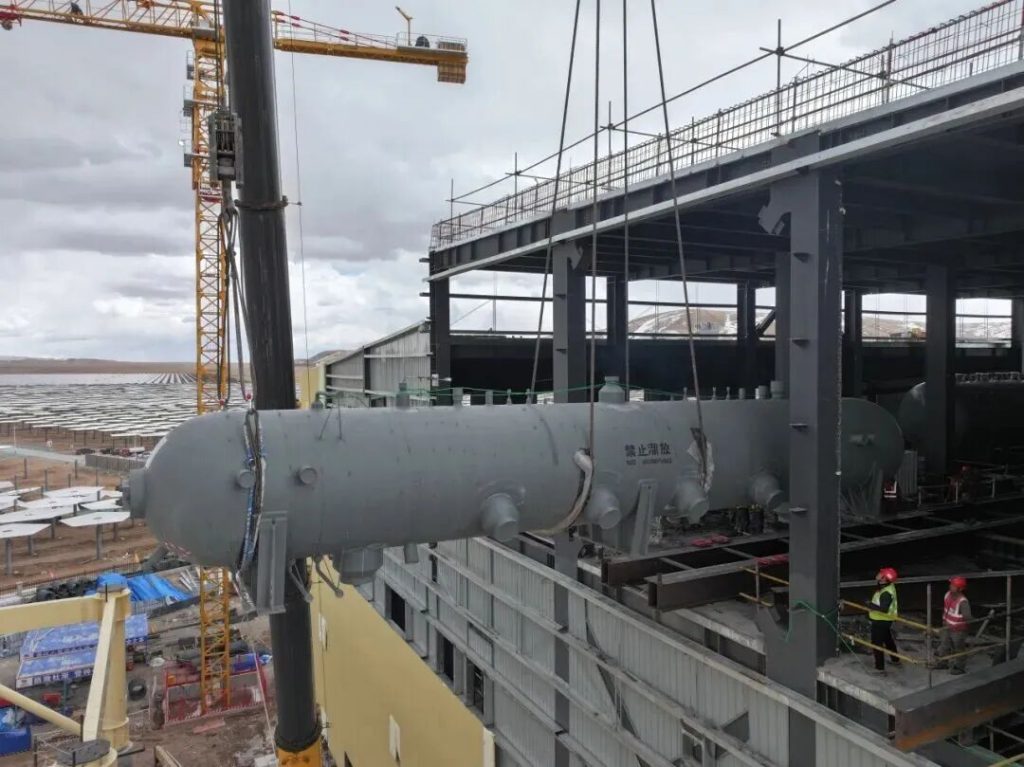 On April 19, the 100 MW tower-type concentrated solar power (CSP) project in Tuoshuo, Anduo County, developed by Xizang Development & Investment (Tibet Development Investment), achieved a key construction milestone with the successful hoisting of its steam drum, a critical core equipment component. The project is the first tower-type CSP plant in Tibet and currently the highest-altitude CSP project in the world.